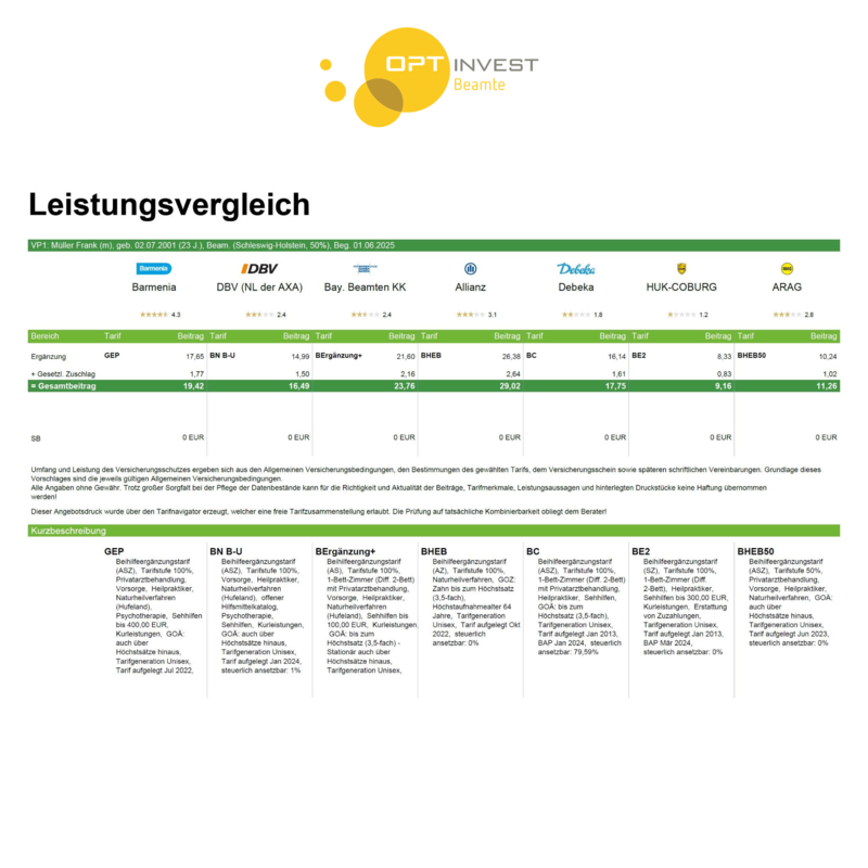 Ich habe mich von Timo wegen einer privaten Krankenversicherung im Zuge meines bald anstehenden Referendariats beraten lassen. Die Beratung war rundum sehr angenehm für mich. Timo hat mich in ein neues Themenfeld sehr kompetent, freundlich und mit viel Zeit eingeführt und auf alle meine Fragen und Bedürfnisse Rücksicht genommen. Er hat es mir enorm erleichtert, mich im Bereich der privaten Krankenversicherung zurechtzufinden. Ich kann deshalb Timo und das Team von OPTINVEST nur weiterempfehlen. :)